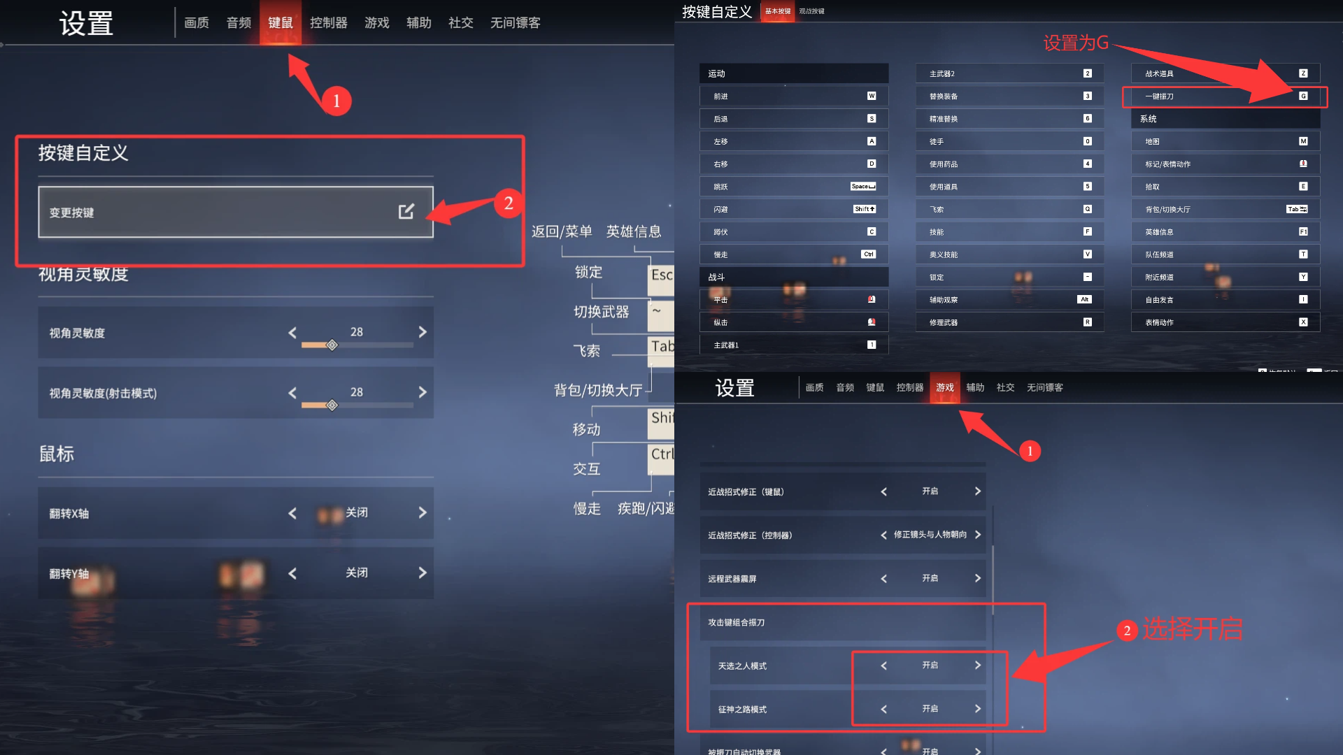 温馨提示:振刀需在游戏内设置G键为振刀键以及开启鼠标组合键振刀